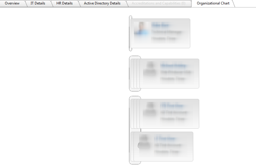 private void LoadOrgChart() { Directory_BLL.EmployeeManager ContactMgr = new Directory_BLL.EmployeeManager(); //Table to define the nodes DataTable nodeTable = new DataTable(); nodeTable.Columns.Add("ID"); nodeTable.Columns.Add("ManagerID"); //Table to hold the data for the items DataTable itemsTable = new DataTable(); itemsTable.Columns.Add("NodeID"); itemsTable.Columns.Add("ID"); itemsTable.Columns.Add("FullName"); itemsTable.Columns.Add("Title"); itemsTable.Columns.Add("CityProvince"); itemsTable.Columns.Add("ImageURL"); //Get Contacts Manager var tmpCM = ContactMgr.GetEmployeeByID(ContactToDisplay.ManagerID); if (tmpCM.ID != 1) { //Get Contacts Managers employees var tmpCME = ContactMgr.GetEmployeesByManagerID(tmpCM.ID); //Get Contacts Employees var tmpCE = ContactMgr.GetEmployeesByManagerID(ContactToDisplay.ID); //Add the nodes to the nodesTable nodeTable.Rows.Add(new string[] { "1", null }); nodeTable.Rows.Add(new string[] { "2", "1" }); //Add the details of the employees to the itemTable itemsTable.Rows.Add(new string[] { "1", tmpCM.ID.ToString(), "<b>" + tmpCM.OrgChartFullNameLink + "</b>", tmpCM.Title, tmpCM.City + ", " + tmpCM.Province, "EmployeePhoto.ashx?img=thumb&id=" + tmpCM.ID }); foreach (Directory_BO.Employee tmpC in tmpCME) { itemsTable.Rows.Add(new string[] { "2", tmpC.ID.ToString(), "<b>" + tmpC.OrgChartFullNameLink + "</b>", tmpC.Title, tmpC.City + ", " + tmpC.Province, "EmployeePhoto.ashx?img=thumb&id=" + tmpC.ID }); } if (tmpCE.Count > 0) { nodeTable.Rows.Add(new string[] { "3", "2" }); foreach (Directory_BO.Employee tmpC in tmpCE) { itemsTable.Rows.Add(new string[] { "3", tmpC.ID.ToString(), "<b>" + tmpC.OrgChartFullNameLink + "</b>", tmpC.Title, tmpC.City + ", " + tmpC.Province, "EmployeePhoto.ashx?img=thumb&id=" + tmpC.ID }); } } //Setup the relationships within the OrgChart radOrgChart.GroupEnabledBinding.NodeBindingSettings.DataFieldID = "ID"; radOrgChart.GroupEnabledBinding.NodeBindingSettings.DataFieldParentID = "ManagerID"; radOrgChart.GroupEnabledBinding.NodeBindingSettings.DataSource = nodeTable; radOrgChart.GroupEnabledBinding.GroupItemBindingSettings.DataFieldNodeID = "NodeID"; radOrgChart.GroupEnabledBinding.GroupItemBindingSettings.DataFieldID = "ID"; radOrgChart.GroupEnabledBinding.GroupItemBindingSettings.DataImageUrlField = "ImageURL"; radOrgChart.GroupEnabledBinding.GroupItemBindingSettings.DataSource = itemsTable; //Bind the OrgChart radOrgChart.DataBind(); } else { radTabOrgChart.Enabled = false; } }<telerik:RadPageView ID="radPVOrgChart" runat="server"> <telerik:RadOrgChart ID="radOrgChart" runat="server" GroupColumnCount="4" DisableDefaultImage="false" ClientIDMode="Static" Skin="Sitefinity" OnGroupItemDataBound="radOrgChart_GroupItemDataBound"> <RenderedFields> <ItemFields> <telerik:OrgChartRenderedField DataField="FullName" /> <telerik:OrgChartRenderedField DataField="Title" /> <telerik:OrgChartRenderedField DataField="CityProvince" /> </ItemFields> </RenderedFields> </telerik:RadOrgChart> </telerik:RadPageView>