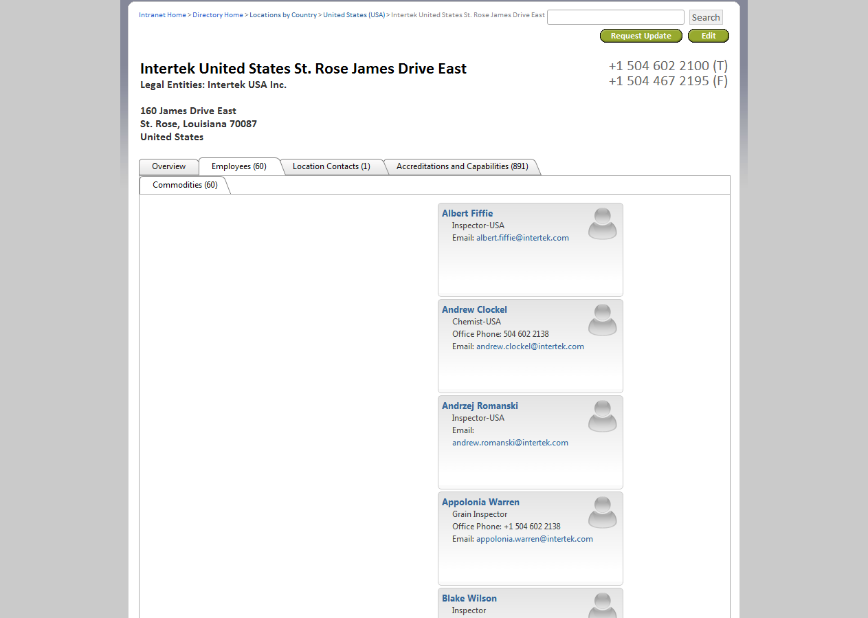 private void LoadEmployees() { Directory_BO.Collections.Employees tmpEmployees = new Directory_BLL.OfficeManager().GetOfficeEmployees(OfficeToDisplay.ID); if (tmpEmployees.Count > 0) { tblNoEmployees.Visible = false; } else { radTabEmployees.Enabled = false; return; } //Set the text of the tab radTabEmployees.Text = "Employees (" + tmpEmployees.Count + ")"; //Get the Distinct Ability Types var distinctDivisions = tmpEmployees.Cast<Directory_BO.Employee>().GroupBy(c => c.DivisionName).Select(grp => grp.First()).OrderBy(o => o.ContactDivision.Code); //Create the Tabs and MultiPage pageviews foreach (Directory_BO.Employee div in distinctDivisions) { var tmpDivEmployees = tmpEmployees.Cast<Directory_BO.Employee>().Where(c => c.ContactDivision.ID == div.ContactDivision.ID); //Add Multipage for the Division Telerik.Web.UI.RadPageView tmpPageView = new Telerik.Web.UI.RadPageView(); tmpPageView.ID = "radPV" + div.ContactDivision.Code; radMPEmployees.PageViews.Add(tmpPageView); //Add Tab for the Divison Telerik.Web.UI.RadTab tmpTab = new Telerik.Web.UI.RadTab((div.ContactDivision.Code != string.Empty ? div.ContactDivision.Name : "Not Listed") + " (" + tmpDivEmployees.Count() + ")", div.ContactDivision.ID.ToString()); tmpTab.PageViewID = tmpPageView.ID; radTSEmployees.Tabs.Add(tmpTab); //Create and load the RadOrgChart Telerik.Web.UI.RadOrgChart tmpOrgChart = new Telerik.Web.UI.RadOrgChart(); tmpOrgChart.ID = "radOC" + div.ContactDivision.Code; tmpOrgChart.EnableEmbeddedBaseStylesheet = false; tmpOrgChart.EnableEmbeddedSkins = false; tmpOrgChart.Skin = "IntertekEmployee"; tmpOrgChart.GroupColumnCount = 3; tmpOrgChart.DisableDefaultImage = true; tmpOrgChart.ItemTemplate = new EmployeeItemTemplate(); //Table to hold the data for the items DataTable itemsTable = new DataTable(); itemsTable.Columns.Add("NodeID"); itemsTable.Columns.Add("FullNameLink"); itemsTable.Columns.Add("Title"); itemsTable.Columns.Add("FullContactInfo"); itemsTable.Columns.Add("EmployeeID"); //Add the details of the employees to the itemTable foreach (Directory_BO.Employee tmpC in tmpDivEmployees) itemsTable.Rows.Add(new string[] { "1", tmpC.FullNameLink, tmpC.Title, tmpC.FullContactInfo, tmpC.ID.ToString() }); //Bind the Employee List OrgChart tmpOrgChart.DataSource = itemsTable; tmpOrgChart.DataBind(); //Add a top border Literal tmpLiteral = new Literal(); tmpLiteral.Text = "<div style='border-top:solid 1px #AAAAAA;'></div>"; //Add the RadOrgChart to the Mulitpage radMPEmployees.FindControl(tmpPageView.ID).Controls.Add(tmpLiteral); radMPEmployees.FindControl(tmpPageView.ID).Controls.Add(tmpOrgChart); } }OrgChart align issue2.png Code: