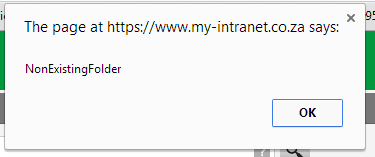 Upon starting the web application I get a javascript error: "NonExistingFolder". When I close the error everything works as it should but i cant seem to get rid of this error message. Has anyone encountered this before? Also. This only happens on the server and not on my local machine.