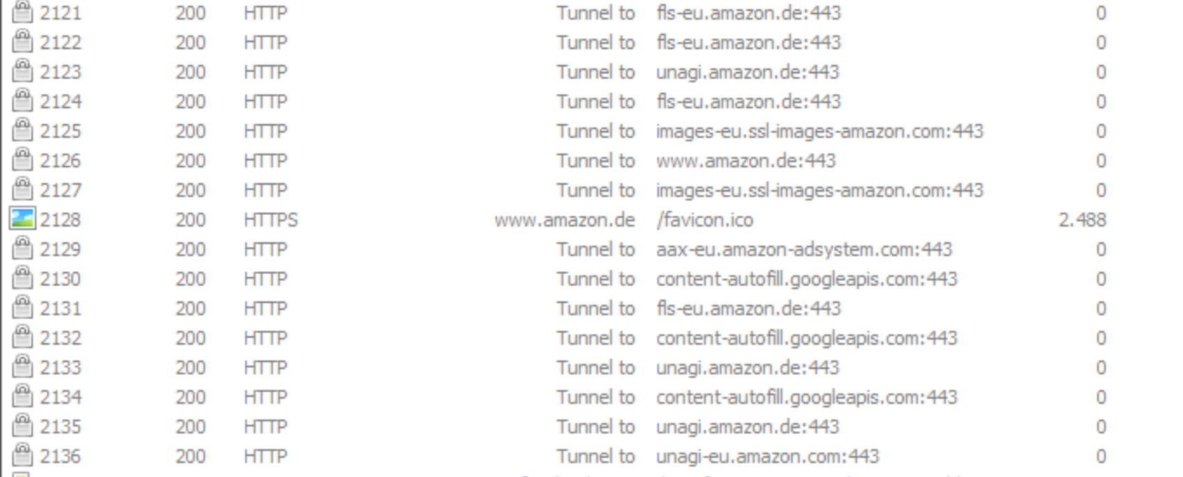 EDIT: I've setup an Android emualator. When I enter for instance amazon.de I am asked to continue to amazon.de as in screenshot*.png. Then Fiddler capture looks like in amazon.png .. Most of traffic still tunneled and size 0.