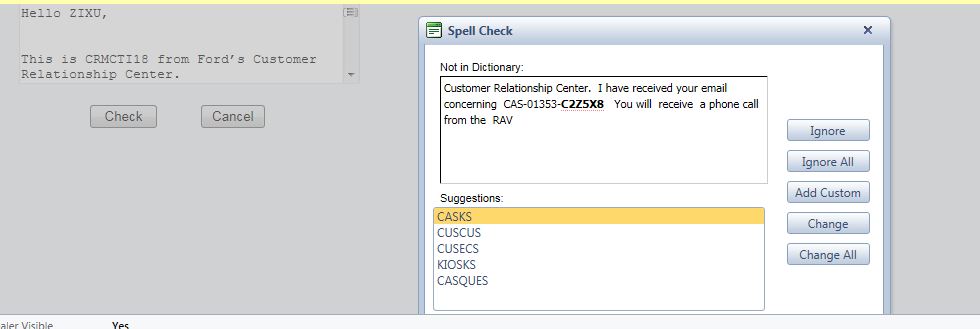 We are using a Windows client application Microsoft Customer Care Accelerator.We have implemented the spell check in email body which works fine when email in opened in IE browser.