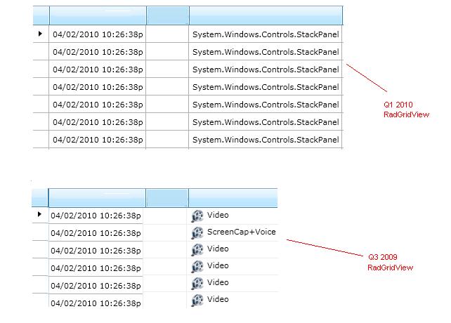 But after i have updated to Q1 2010 the RadGridView just displays the Type Text,