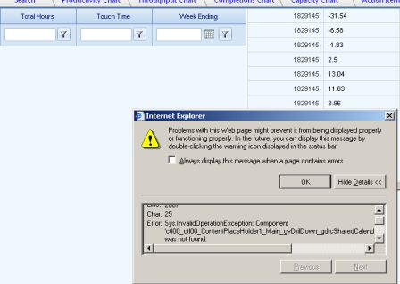 While the page is loading we get this error 'ct100_ContentPlaceHolder1_GridName_gdtcSharedCalendar' was not found. Could you please tell us where are we possibly going wrong.