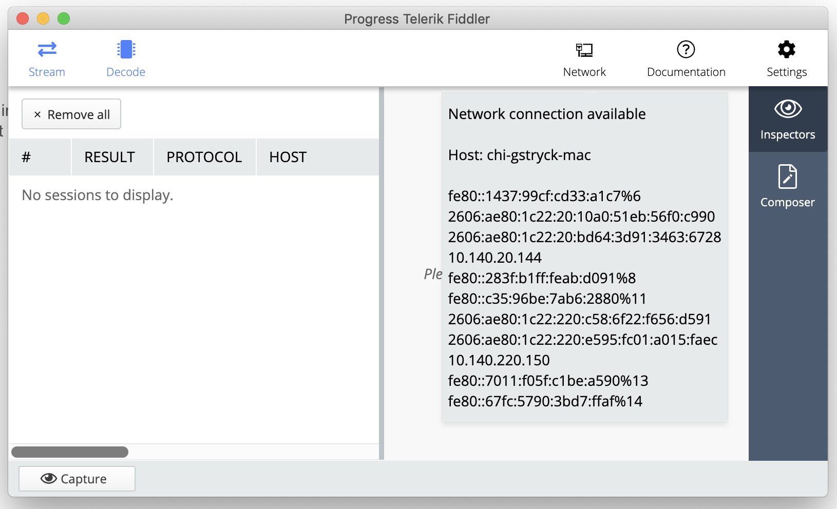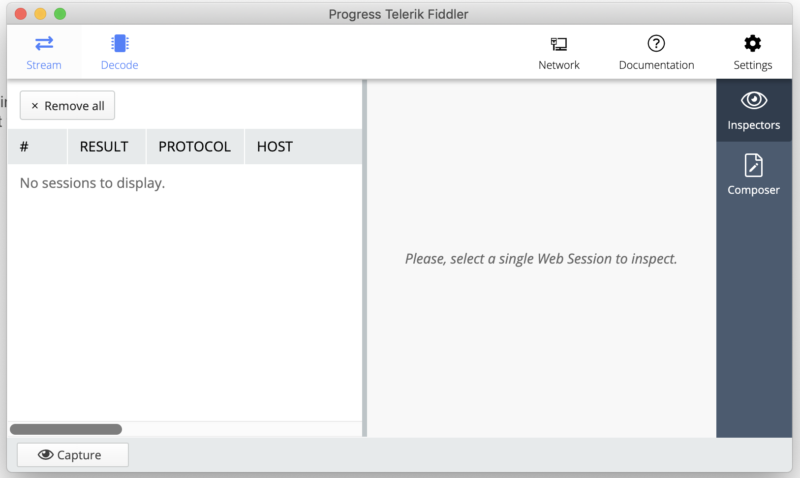 Hi, we're trying Fiddler everywhere on OSX Mojave, as a replacement to Charles, and it seemed to work when first installed as I got the password prompt, but upon relaunch it now no longer prompts for a password. Clicking the 'Capture button also does nothing.