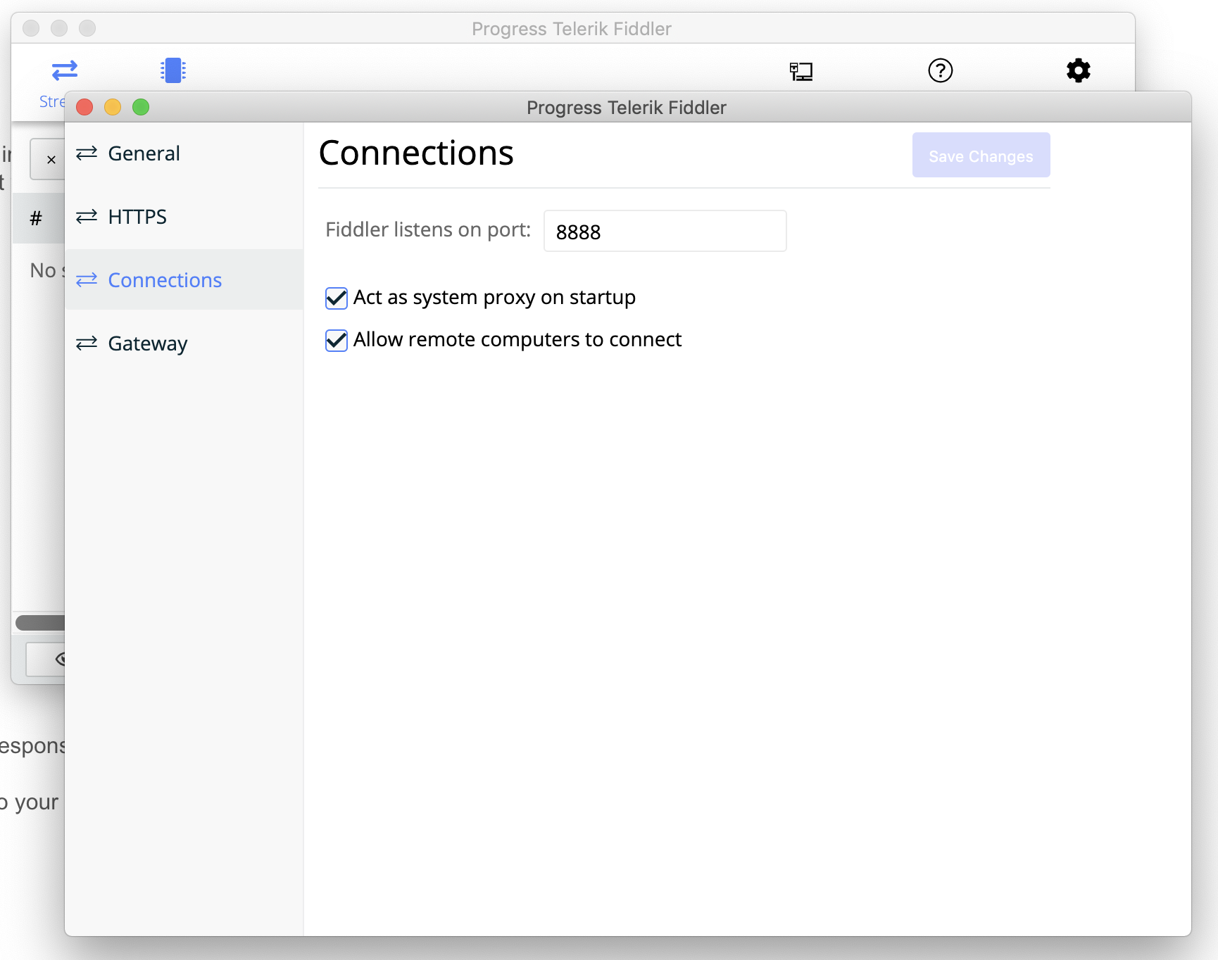 If the above behavior is not working as expected, I recommend checking the Web Proxy (HTTP) and Secure Web Proxy (HTTPS) items while Fiddler Everywhere is running and verifying that Capturing works.