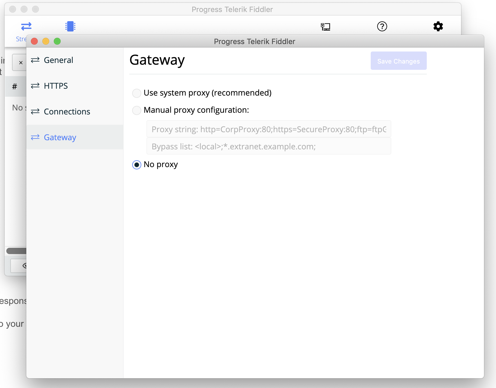 Mac Proxy Settings when Fiddler Everywhere is not running.