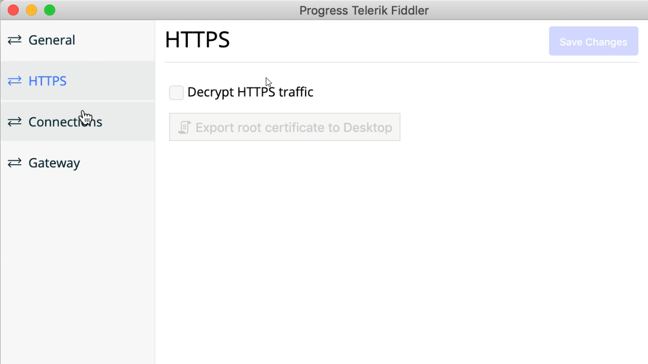 - Open Fiddler Everywhere and disable the HTTPS setting (Uncheck the Decrypt HTTPS traffic in the HTTPS settings page)