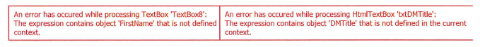 'The expression contains object <field_name> that is not defined in the current context'