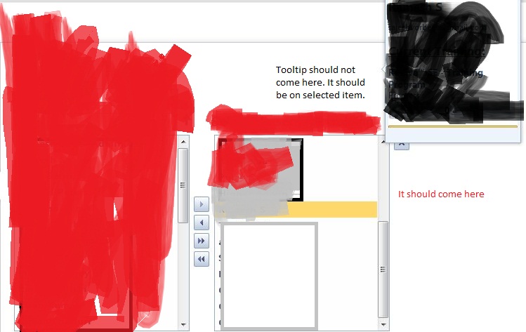 And here is my defect: It is coming perfectly for first 12 elements which loads on page refresh. But the moment i scroll down and then select and item in radlistbox . Tooltip position goes up. I have tried many things. please help me asap.