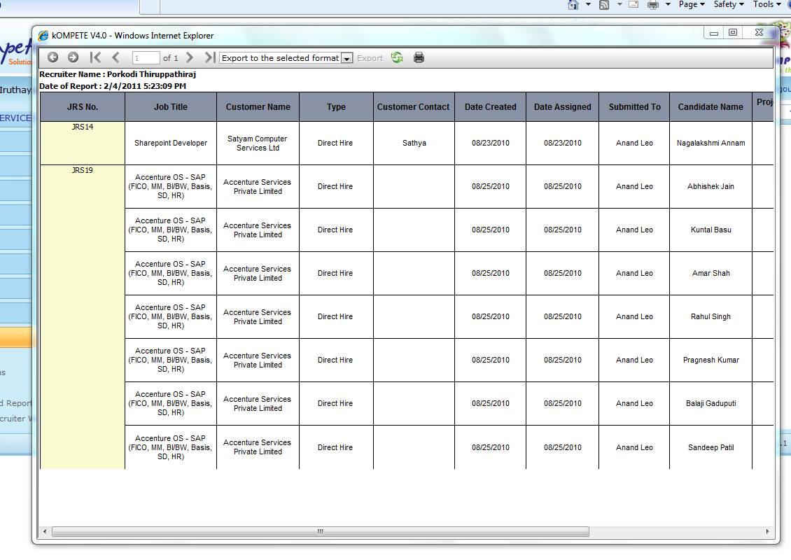 In our application we are using Reports.