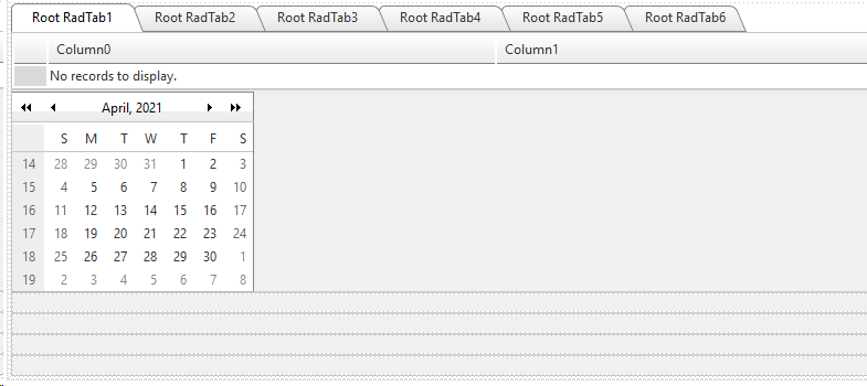 I have a grid on the first tab and a radcalendar & grid on the 2nd tab.