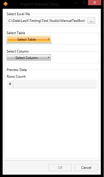 The issue I am having is importing excel files. My excel file consists of nothing but a few steps in column A, rows 1 - 3. Whenever I try to import the XLSX, after inputting the file path, I move to the Select Table drop down menu and click on the arrow. As you can see in the screenshot, nothing shows up when it drops down. The same thing happens for the Select Column drop down menu.