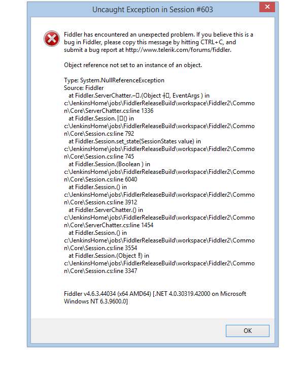 Could you, please, update to the latest version of Fiddler?