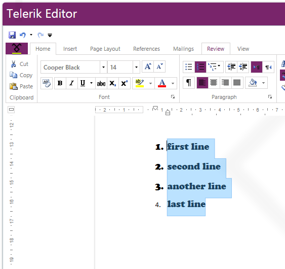 I'm having an issue when applying a font style to a numbered list in RadRiсhTextBox.
