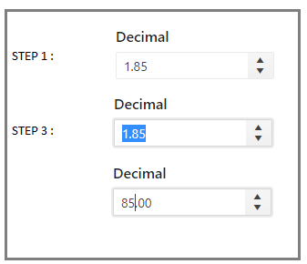 Step 1 : user entered the value 1.85 in the numeric text box.
