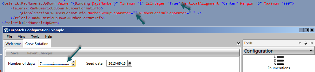 <telerik:RadNumericUpDown Value="{Binding DaysNumber}" Minimum="1" IsInteger="True" VerticalAlignment="Center" Margin="5" Maximum="999"> <telerik:RadNumericUpDown.NumberFormatInfo> <globalization:NumberFormatInfo NumberGroupSeparator="" NumberDecimalSeparator="." /> </telerik:RadNumericUpDown.NumberFormatInfo></telerik:RadNumericUpDown>NumericUpDown control allows to enter commas (the screenshot is attached). How can I forbid that?