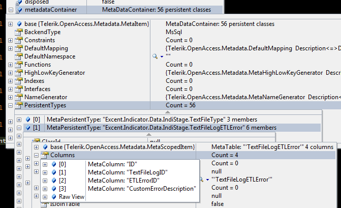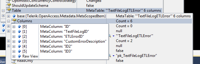 I have renamed all my PK fields but the problem still exists. The only difference is in the error message which now shows changed field names: "Telerik.OpenAccess.RT.sql.SQLException: Invalid column name 'ETLErrorID2'. Invalid column name 'TextFileLogID2'."