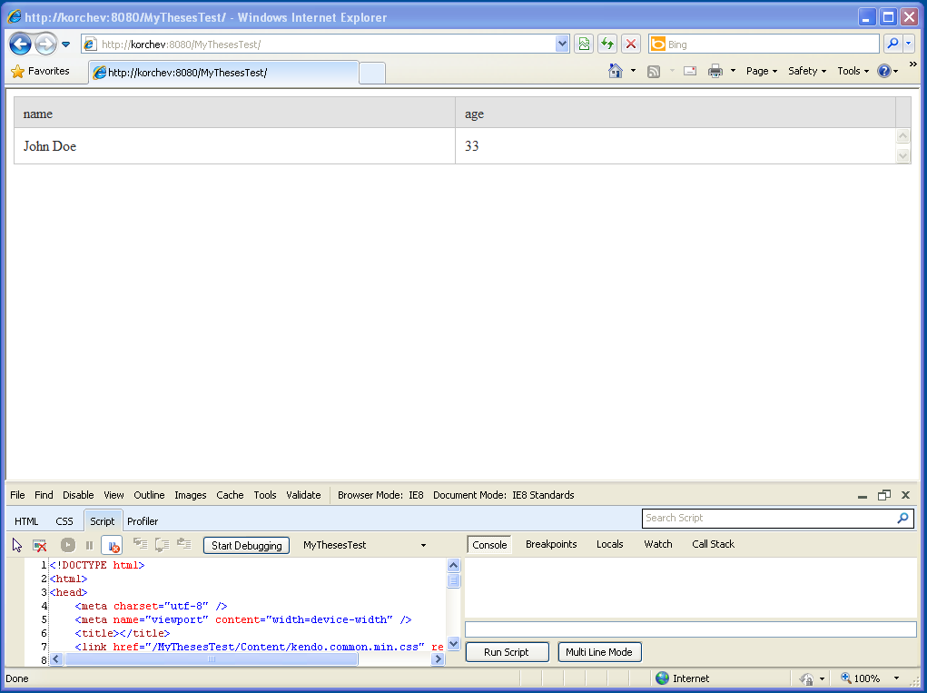 I have created ASP .NET MVC 4 Web API application, added the necessary Kendo UI files and settings (js, styles, web.config) and registered the necessary scripts and styles in Index.cshtml.