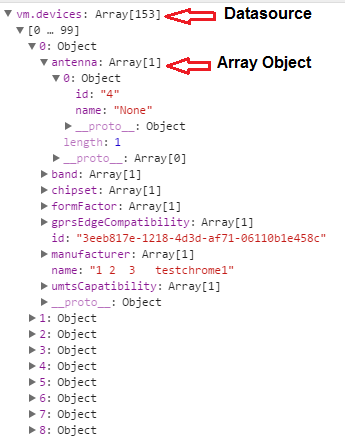 Have a json array that has arrays of arrays. However, the key value pair of an array is displaying "[object Object]" when I add the template "=#manufacturer.name" I get undefined. Can the grid handle this type of json object. See attached file for object layout. I am using Kendo UI Grid with AngularJS 1.15