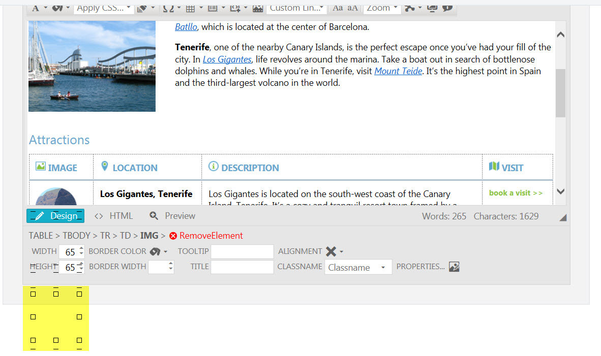 The square handles that appeared in Step 2 scroll right down off the bottom of the editor into the page below it rather than being hidden. I attached a screenshot showing the issue, with it highlighted in yellow.