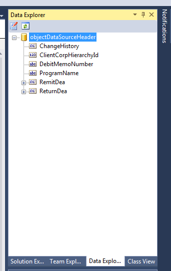 I'm building an audit report using Telerik Reporting (version R2 2016 SP1). I'm using an ObjectDataSource object that accesses the app's business layer. I used the method call for the Data Member; but the Data Explorer doesn't recognize one of the complex object properties ("ChangeHistory") my coworker wrote.