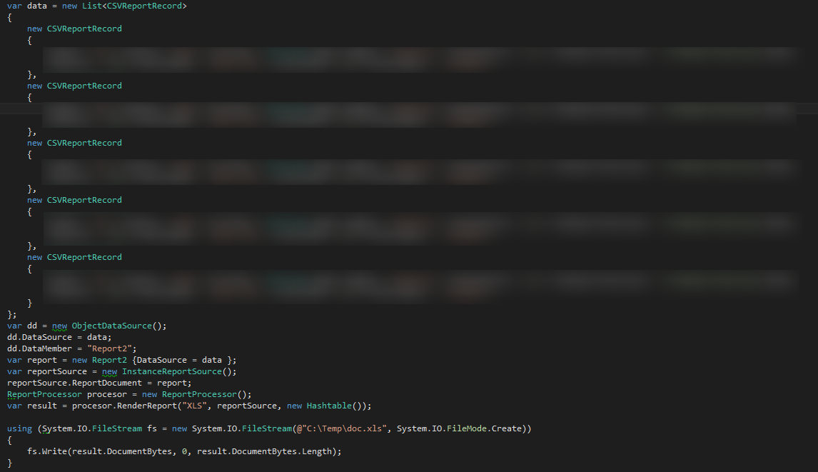 The issue is that at run-time, you create an instance of the report and then you set the report's DataSource property instead of the nested Table item's DataSource property. The result is repeating Detail section with empty Table item - Repeating data problem.