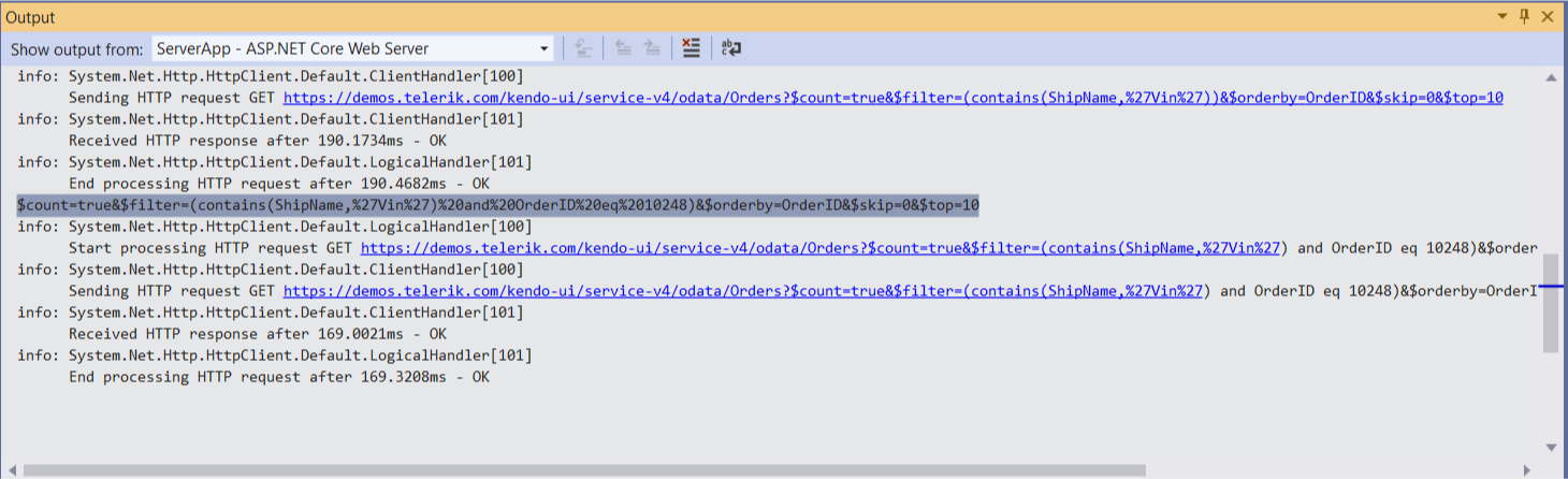 https://demos.telerik.com/kendo-ui/service-v4/odata/Products?$count=true&$filter=((contains(ProductName,%27Cha%27)))&$skip=0&$top=10Could you modify the project so that the behavior you are experiencing is reproducible and we can further investigate?
