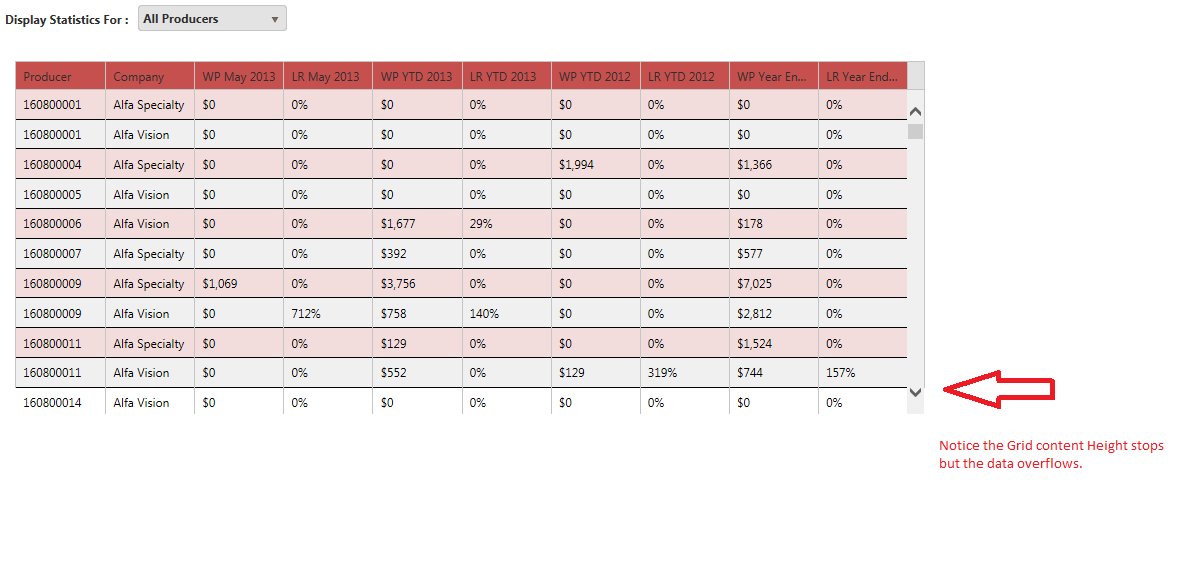 First: notice the grid content height is shorter than the actual displayed content. this grid is created by calling .kendoGrid() on an html table.