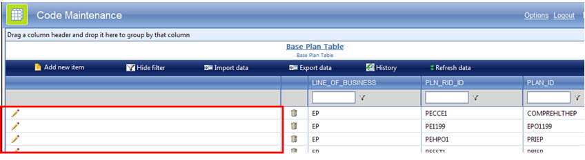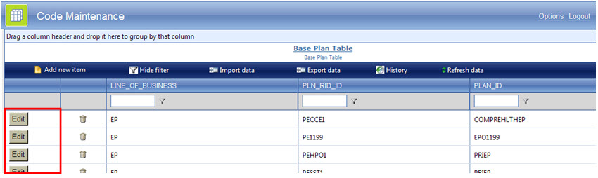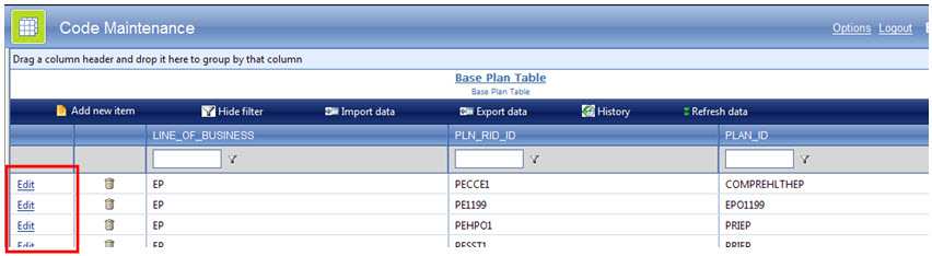 <telerik:RadSplitter ID="RadSplitter1" runat="server" Orientation="Horizontal" Width="100%"<br> Height="100%" FullScreenMode="True" BorderSize="0" ResizeWithBrowserWindow="true" ResizeMode="Proportional" ResizeWithParentPane="False"><br> <telerik:RadPane ID="HeaderPane" runat="server" CssClass="header" Height="48px" Scrolling="None"><br> <table id="TableHeader" width="100%" style="height: 100%; "><br> <tbody><br> <tr valign="middle"><br> <td style="font-size: 10pt; color: white;" width="48px"><br> <img alt="" src="Images/CodeMaintLogo.gif" /><br> </td><br> <td align="left" style="font-size: 14pt; color: white;"> Code Maintenance <br> </td><br> <td align="left" style="font-size: 10pt; color: white;" width="50px"><br> <asp:Label ID="LinkOptions" runat="server" Font-Underline="True" ForeColor="White" Text="Options"> </asp:Label><br> </td><br> <td align="left" style="font-size: 10pt; color: white;" width="50px"><br> <asp:Label ID="LabelLogout" runat="server" Font-Underline="True" ForeColor="White" Text="Logout"></asp:Label><br> </td><br> <td align="left" style="font-size: 10pt; color: white;" width="50px"><br> <asp:Label ID="LabelUserID" runat="server" Font-Bold="True" Font-Size="12pt" Font-Underline="False" ForeColor="White"></asp:Label><br> </td><br> </tr><br> </tbody><br> </table><br> </telerik:RadPane><br><br> <telerik:RadPane ID="MainPane" runat="server" Scrolling="None"><br> <telerik:RadSplitter ID="RadSplitter2" runat="server" Width="100%" Height="100%" LiveResize="True" BorderSize="0" FullScreenMode="True"><br> <telerik:RadPane ID="TreePane" runat="server" CssClass="treepane_default" Width="300px" Height="100%"><br> <telerik:RadTreeView ID="TreeView1" runat="server" SingleExpandPath="True"></telerik:RadTreeView><br> </telerik:RadPane><br> <br> <telerik:RadSplitBar ID="RadSplitBar1" runat="server" CollapseMode="Forward" Height="100%" Width="100%" /><br> <telerik:RadPane ID="GridPane" runat="server" BackColor="#E0E0E0" Height="100%" Scrolling="None" Width="100%"><br> <br> <telerik:RadGrid ID="RadGrid1" runat="server" AllowAutomaticDeletes="True" AllowFilteringByColumn="True" AllowPaging="True" AllowSorting="True" CssClass="MasterTable_Default" GridLines="None" PageSize="15" ShowDesignTimeSmartTagMessage="False" ShowGroupPanel="True" ShowStatusBar="True" Skin="Web20" Width="100%" Height="100%"><br> <PagerStyle AlwaysVisible="True" BackColor="#D2D6DB" ForeColor="Blue" Mode="NextPrevAndNumeric"></PagerStyle><br> <ClientSettings AllowDragToGroup="True" AllowGroupExpandCollapse="True"><br> <Scrolling AllowScroll="True" ScrollHeight="100%"></Scrolling><br> <ClientEvents OnColumnMouseOut="OnColumnMouseOut" OnColumnMouseOver="OnColumnMouseOver" OnFilterMenuShowing="OnFilterMenuShowing" OnGridCreated="GridCreated" OnRowDblClick="RowDblClick" /><br> </ClientSettings><br> <br> <MasterTableView CellPadding="1" CommandItemDisplay="Top" EditMode="InPlace" GridLines="None" GroupLoadMode="Client"><br> <HeaderStyle CssClass="grid_header" ForeColor="White" Wrap="False"></HeaderStyle><br> <CommandItemTemplate><br> <table width="900px" style="height: 100%"><br> <tr align="left" valign="middle"><br> <td align="center"><br> <img alt="" src="RadControls/Grid/Skins/AddRecord.gif" style="border: 0px" /><br> <asp:LinkButton ID="btnAdd" runat="server" CommandName="InitInsert" Text="Add new item"></asp:LinkButton><br> </td><br> <td align="center"><br> <img alt="" src="Images/Filter.JPG" style="border: 0px" /><br> <asp:LinkButton ID="BtnFilter" runat="server" CommandName="ShowFilter" Text="Show filter"></asp:LinkButton><br> </td><br> <td align="center"><br> <img alt="" src="Images/Import.JPG" style="border: 0px" /><br> <asp:LinkButton ID="BtnImport" runat="server" CommandName="Import" Text="Import data"></asp:LinkButton><br> </td><br> <td align="center"><br> <img alt="" src="Images/Export.JPG" style="border: 0px" /><br> <asp:LinkButton ID="BtnExport" runat="server" CommandName="Export" Text="Export data"></asp:LinkButton><br> </td><br> <td align="center"><br> <img alt="" src="Images/History.JPG" style="border: 0px" /><br> <asp:LinkButton ID="BtnHistory" runat="server" CommandName="History" Text="History"></asp:LinkButton><br> </td><br> <td align="center"><br> <img alt="" src="RadControls/Grid/Skins/Refresh.gif" style="border: 0px" /><br> <asp:LinkButton ID="btnRefresh" runat="server" CommandName="Rebind" Text="Refresh data"></asp:LinkButton><br> </td><br> <td>   </td><br> </tr><br> </table><br> </CommandItemTemplate><br> <br> <EditFormSettings CaptionFormatString="Update Code Table" ColumnNumber="2"><br> <FormStyle BackColor="#EEF2EA" BorderColor="#6788BE" BorderStyle="Solid" BorderWidth="1px" CssClass="Grid_EditForm"></FormStyle><br> <EditColumn ButtonType="PushButton" UniqueName="EditCommandColumn1"><br> </EditColumn><br> <FormTableButtonRowStyle HorizontalAlign="Center"></FormTableButtonRowStyle><br> <FormTableStyle CellPadding="2" CellSpacing="0" CssClass="module" GridLines="Horizontal" /><br> <FormCaptionStyle CssClass="Grid_EditFormHeader" Font-Bold="True" HorizontalAlign="Left" /><br> <FormMainTableStyle CellPadding="3" CellSpacing="0" /><br> <FormTableItemStyle Wrap="False" /><br> </EditFormSettings><br> <Columns><br> <telerik:GridEditCommandColumn ButtonType="ImageButton" Reorderable="False" ShowSortIcon="False"><br> <HeaderStyle ForeColor="DimGray" Width="20px" /><br> <ItemStyle HorizontalAlign="Center" Width="20px" /><br> </telerik:GridEditCommandColumn><br><br> <telerik:GridButtonColumn ButtonType="ImageButton" CommandName="DELETE" ConfirmText="Are you sure you want to Delete this record?" HeaderButtonType="PushButton" ImageUrl="~/RadControls/Grid/Skins/Web20/Delete.gif" Reorderable="False" ShowSortIcon="False" UniqueName="DeleteColumn"><br> <ItemStyle HorizontalAlign="Center" /><br> </telerik:GridButtonColumn><br> </Columns><br> <br> <ExpandCollapseColumn Resizable="False" Visible="False"><br> <HeaderStyle Width="20px"></HeaderStyle><br> </ExpandCollapseColumn><br><br> <RowIndicatorColumn Visible="Fa