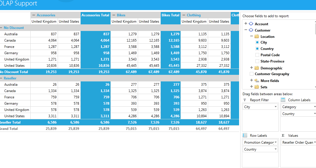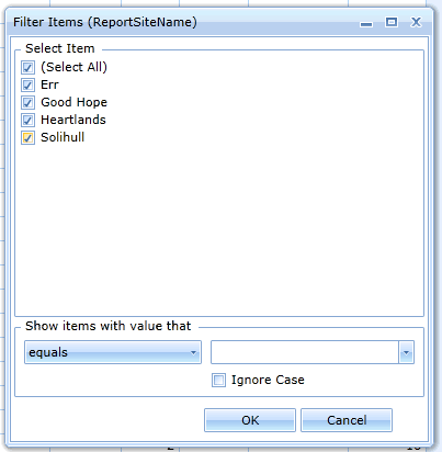 I have a PivotGrid, reading an SSAS OLAP cube. This works really well, apart from a problem when applying some filters. If a field is dragged into the report filter box, and the filter applied by first unselecting all the values, then choosing a single value , the grid shows the correct totals, but shows blanks in the other cells.