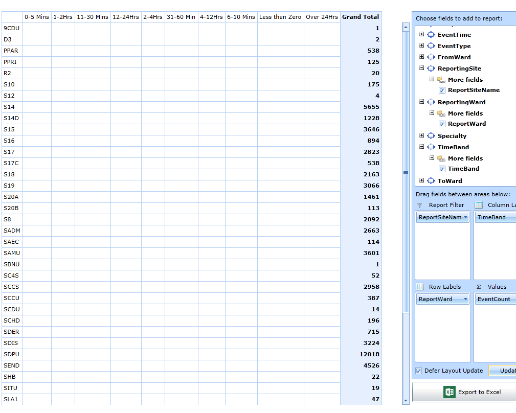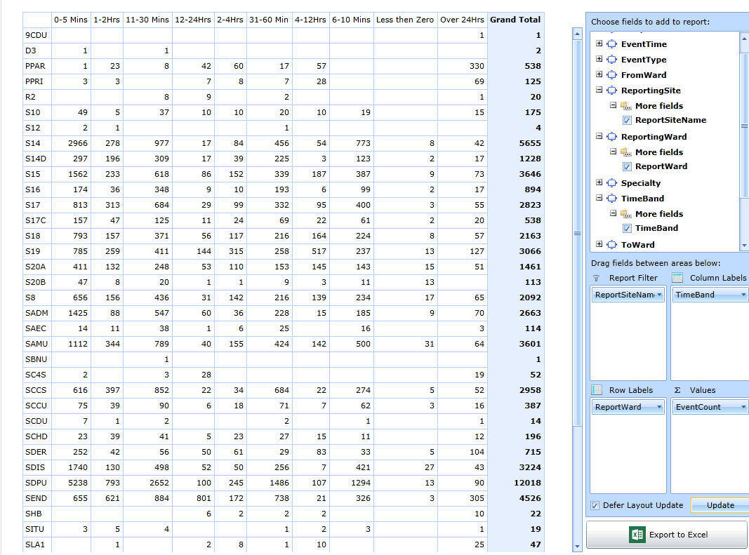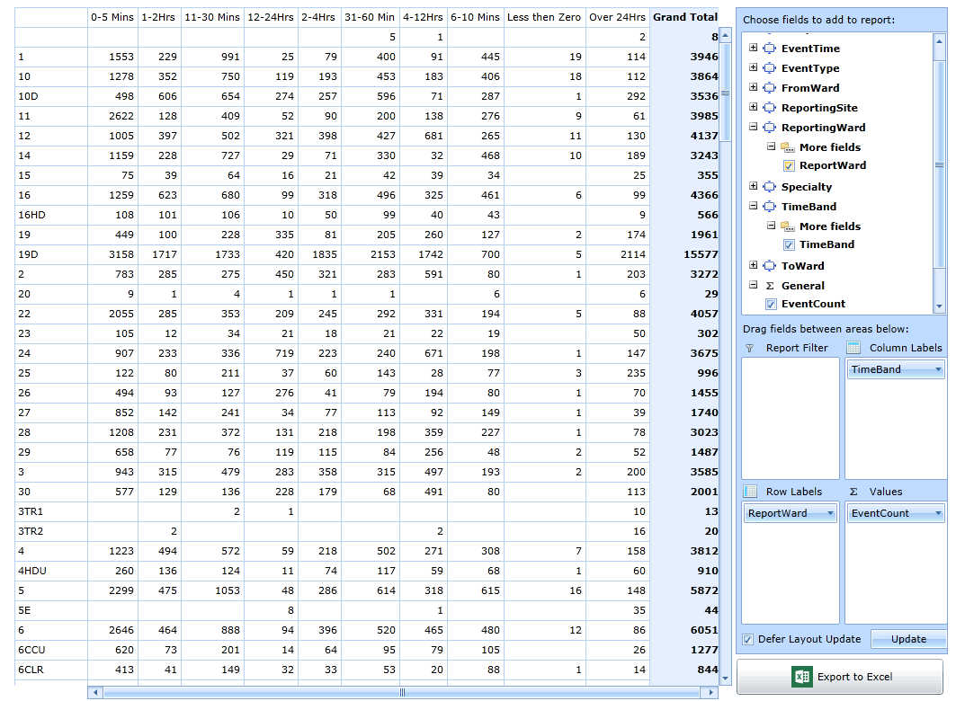 <UserControl xmlns:sys="clr-namespace:System;assembly=mscorlib" xmlns:pivot="http://schemas.telerik.com/2008/xaml/presentation/pivot" x:Class="CubeBrowser.MainPage" mc:Ignorable="d" d:DesignHeight="400" d:DesignWidth="700"> <UserControl.Resources> <pivot:XmlaDataProvider x:Key="DataProvider"> <pivot:XmlaDataProvider.ConnectionSettings> <pivot:XmlaConnectionSettings Cube="ADT_Timeliness_Cube" Database="AcademyAS" ServerAddress="http://finsql3/olap/msmdpump.dll"/> </pivot:XmlaDataProvider.ConnectionSettings> <pivot:XmlaDataProvider.RowGroupDescriptions> <pivot:XmlaGroupDescription MemberName="[EventType].[EventType]"/> </pivot:XmlaDataProvider.RowGroupDescriptions> <pivot:XmlaDataProvider.ColumnGroupDescriptions> <pivot:XmlaGroupDescription MemberName="[ReportingSite].[ReportSiteName]"/> </pivot:XmlaDataProvider.ColumnGroupDescriptions> <pivot:XmlaDataProvider.AggregateDescriptions> <pivot:XmlaAggregateDescription MemberName="[Measures].[EventCount]"/> </pivot:XmlaDataProvider.AggregateDescriptions> <pivot:XmlaDataProvider.FilterDescriptions> </pivot:XmlaDataProvider.FilterDescriptions> </pivot:XmlaDataProvider> </UserControl.Resources> <Grid x:Name="LayoutRoot" Background="White" > <Grid.ColumnDefinitions> <ColumnDefinition Width="3*" /> <ColumnDefinition Width="*" /> </Grid.ColumnDefinitions> <Grid.RowDefinitions> <RowDefinition Height="*" /> <RowDefinition Height="Auto" /> </Grid.RowDefinitions> <pivot:RadPivotGrid x:Name="Pivot" Grid.RowSpan="2" DataProvider="{StaticResource DataProvider}" /> <pivot:RadPivotFieldList x:Name="FieldList" Grid.Column="1" Margin="4 0 0 0" DataProvider="{StaticResource DataProvider}"/> </Grid></UserControl>