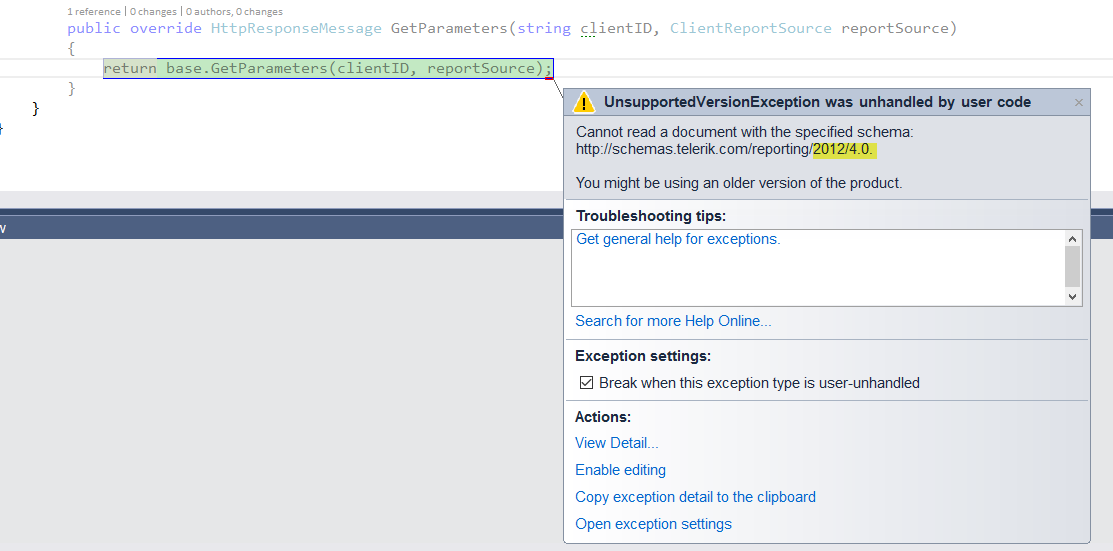 I then load it through a REST API using a ReportController, and am told the schema is old.