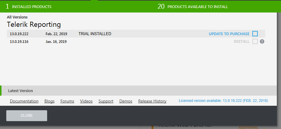I wanted to install Telerik Reporting 12.2.18.912, but in the Progress Control Panel in Telerik Reporting under "View All Versions" I can only see 2 versions. (See in scrennshot). How can i install the version that I need?