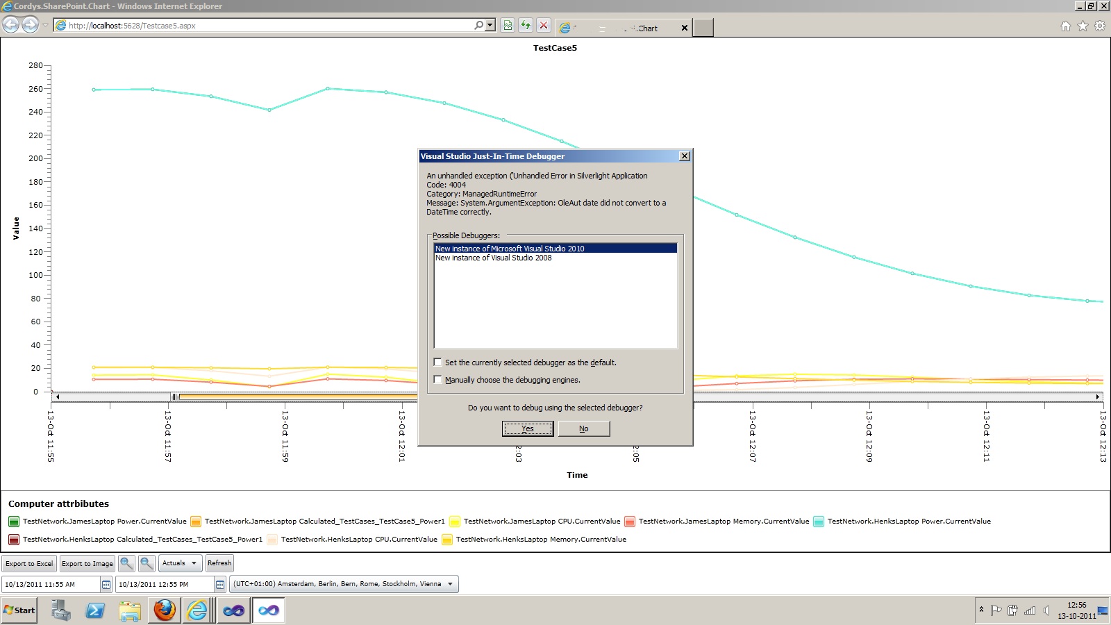 I've encountered a problem when zooming into a chart. If I move the scroll slider an exception pops up saying System.Argument.Exception OleAut did not convert to a date time. I've no idea why it does this and am unable to catch the exception.