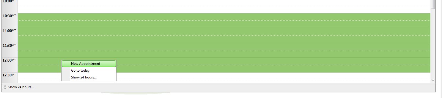 I am trying to get the selected time range for a new appointment and am getting incorrect information passed into the OnClientAppointmentInserting method. As shown in the screen shot "appointment selection.jpg" I select a time period of 10:30 am to 12:30 pm, I then right click and select new appointment. When the OnClientAppointmentInserting method is fired the start time is now 12:00 pm and the end time is now 12:15 pm (see "timeslot.jpg").