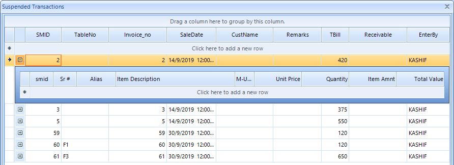 private void frmSaleListPending_Load(object sender, EventArgs e) { DataSet dataSet = CreateDataSet(); this.MasterBindingSource.DataSource = dataSet; this.MasterBindingSource.DataMember = "SALES_M"; this.DetailBindingSource.DataSource = dataSet; this.DetailBindingSource.DataMember = "SALES_D"; GridViewTemplate childTemplate = CreateChildTemplate(); this.radGridView1.Templates.Add(childTemplate); this.radGridView1.DataSource = this.MasterBindingSource; this.radGridView1.AutoSizeColumnsMode = GridViewAutoSizeColumnsMode.Fill; this.radGridView1.RowSourceNeeded += new GridViewRowSourceNeededEventHandler(radGridView1_RowSourceNeeded); } private DataSet CreateDataSet() { DataSet ds = new DataSet(); ds.Tables.Add(saleRepo.GetSaleDataQuery("Select * from Sales_m where status = 0")); ds.Tables[0].TableName = "SALES_M"; ds.Tables.Add(saleRepo.GetSaleDataQuery("Select * from Sales_d")); ds.Tables[1].TableName = "SALES_D"; DataRelation dataRelation; dataRelation = new DataRelation("SALES_M_SALES_D",ds.Tables["SALES_M"].Columns["SMID"], ds.Tables["SALES_D"].Columns["SMID"]); return ds; }private GridViewTemplate CreateChildTemplate() { GridViewTemplate template = new GridViewTemplate(); template.AutoSizeColumnsMode = GridViewAutoSizeColumnsMode.Fill; GridViewTextBoxColumn Columnid = new GridViewTextBoxColumn { Name = "smid", HeaderText = "smid", FieldName = "smid", Width = 60, IsVisible = false, HeaderTextAlignment = ContentAlignment.MiddleCenter, TextAlignment = ContentAlignment.MiddleCenter }; GridViewTextBoxColumn ColumnSrNo = new GridViewTextBoxColumn { Name = "sr_no", HeaderText = "Sr #", FieldName = "sr_no", Width = 60, HeaderTextAlignment = ContentAlignment.MiddleCenter, TextAlignment = ContentAlignment.MiddleCenter }; GridViewTextBoxColumn ColumnAlias = new GridViewTextBoxColumn { Name = "Alias_Name", HeaderText = "Alias", FieldName = "Alias_name", Width = 100, HeaderTextAlignment = ContentAlignment.MiddleCenter, TextAlignment = ContentAlignment.MiddleCenter }; GridViewTextBoxColumn ColumnItemCode = new GridViewTextBoxColumn { Name = "Item_Code", HeaderText = "Code", FieldName = "Item_Code", Width = 100, IsVisible = false, HeaderTextAlignment = ContentAlignment.MiddleCenter, TextAlignment = ContentAlignment.MiddleCenter }; GridViewTextBoxColumn ColumnItemName = new GridViewTextBoxColumn { Name = "Item_Name", HeaderText = "Item Description", FieldName = "Item_Name", Width = 300, HeaderTextAlignment = ContentAlignment.MiddleLeft, TextAlignment = ContentAlignment.MiddleLeft }; GridViewTextBoxColumn ColumnUOM = new GridViewTextBoxColumn { Name = "ABBR", HeaderText = "M-Unit", FieldName = "ABBR", Width = 50, HeaderTextAlignment = ContentAlignment.MiddleLeft, TextAlignment = ContentAlignment.MiddleLeft }; GridViewDecimalColumn ColumnSaleRate = new GridViewDecimalColumn { Name = "Sale_Rate", HeaderText = "Unit Price", FieldName = "Sale_Rate", Width = 120, FormatString = "{0:N2}", HeaderTextAlignment = ContentAlignment.MiddleRight, TextAlignment = ContentAlignment.MiddleRight }; GridViewDecimalColumn ColumnSaleQty = new GridViewDecimalColumn { Name = "Qty", HeaderText = "Quantity", FieldName = "Qty", Width = 120, FormatString = "{0:N2}", HeaderTextAlignment = ContentAlignment.MiddleRight, TextAlignment = ContentAlignment.MiddleRight }; GridViewDecimalColumn ColumnItAmnt = new GridViewDecimalColumn { Name = "itamnt", HeaderText = "Item Amnt", FieldName = "itamnt", Width = 120, FormatString = "{0:N2}", HeaderTextAlignment = ContentAlignment.MiddleRight, TextAlignment = ContentAlignment.MiddleRight }; GridViewDecimalColumn ColumnAmount = new GridViewDecimalColumn { Name = "itfinalamnt", HeaderText = "Total Value", FieldName = "itfinalamnt", Width = 120, FormatString = "{0:N2}", HeaderTextAlignment = ContentAlignment.MiddleRight, TextAlignment = ContentAlignment.MiddleRight }; template.Columns.AddRange(Columnid,ColumnSrNo, ColumnAlias, ColumnItemCode, ColumnItemName, ColumnUOM, ColumnSaleRate, ColumnSaleQty, ColumnItAmnt, ColumnAmount); return template; }private void radGridView1_RowSourceNeeded(object sender, GridViewRowSourceNeededEventArgs e) { DataRowView rowView = e.ParentRow.DataBoundItem as DataRowView; DataRow[] rows = rowView.Row.GetChildRows("SALES_M_SALES_D"); //Relation Name foreach (DataRow dataRow in rows) { GridViewRowInfo row = e.Template.Rows.NewRow(); row.Cells["sr_no"].Value = dataRow["sr_no"]; row.Cells["Item_code"].Value = dataRow["Item_code"]; row.Cells["alias_Name"].Value = dataRow["alias_Name"]; row.Cells["Item_Name"].Value = dataRow["Item_Name"]; row.Cells["smid"].Value = dataRow["smid"]; row.Cells["Sale_Rate"].Value = dataRow["sale_rate"]; row.Cells["qty"].Value = dataRow["qty"]; row.Cells["itamnt"].Value = dataRow["itamnt"]; row.Cells["itfinalamnt"].Value = dataRow["itfinalamnt"]; e.SourceCollection.Add(row); } }radGridView1_RowSourceNeeded is not called on clicking [+]
