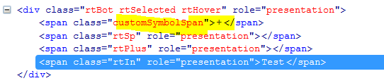 I have placed a span with "+" and "-" symbols just before the "rtSp" span. But now the problem is that I need to keep them synchronized with the status of the node (expanded or collapsed).