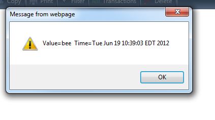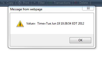 alert('Value=' + sender.get_value() + ' Time=' + Date());