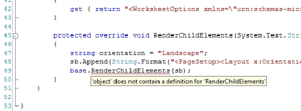 Judging by what can be seen on the image, the base class is wrong. Visual Studio says it is of an "object" type. Normally it has to inherit the ElementBase but I can't see if this is so in your code.