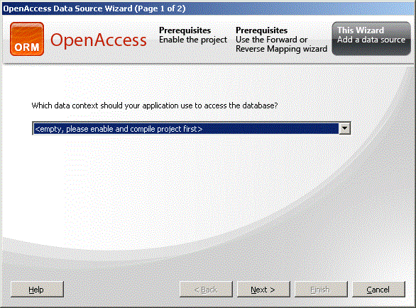 I just want a classes project with a model, and a asp.net application to consume the data via a datacontrol; the ORM OpenAccessDataControl. But every time I drop the datacontrol on the page, click the smart tag, choose configure, I get
