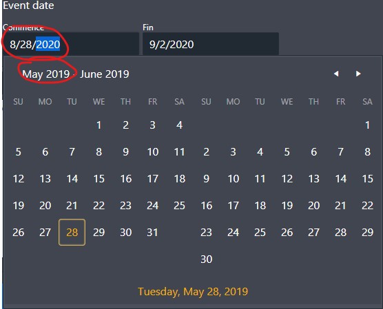 The code you just gave me is half way working. It seems that it shift evrything by a month after as you see in my capture. Something must be wrong I guess. My event start is in august and it open on Septembre.