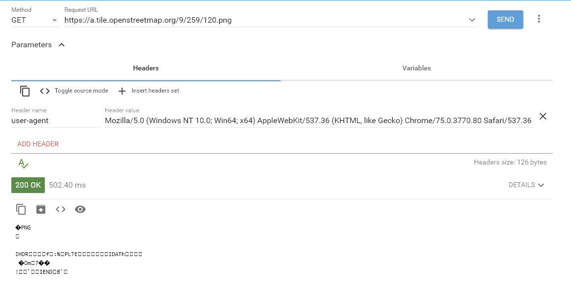 Thus, we plan to introduce a new WebHeaders property of the MultiScaleTileSource (from which the OpenStreetMapnikSource inherits) through which you can add any headers you require (such as User-Agent and Referrer). You will then be able to set the user-agent of the requests like so: