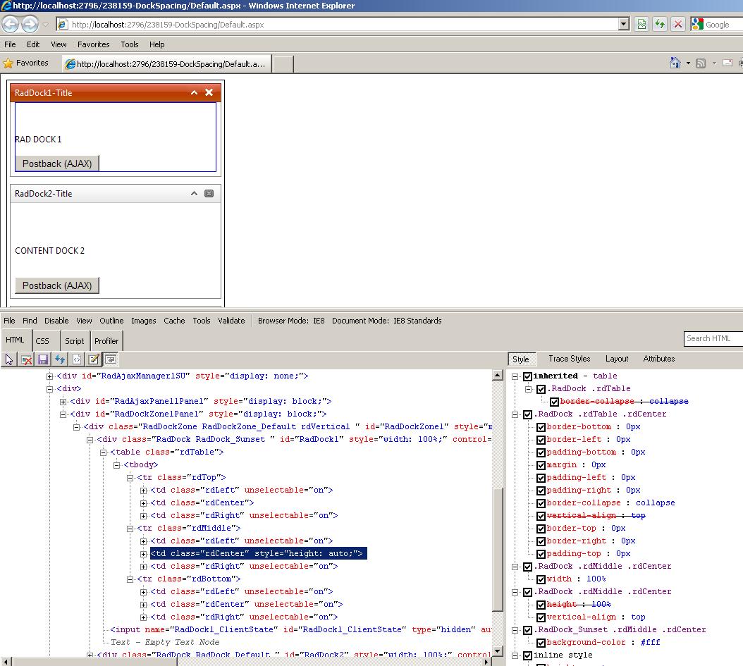 The style attribute isn't rendered by default (see attached screenshot). You can see this if you put together a simple page with RadDock control and use FireBug or IEdevToolbar to inspect the HTML element of the RadDock.