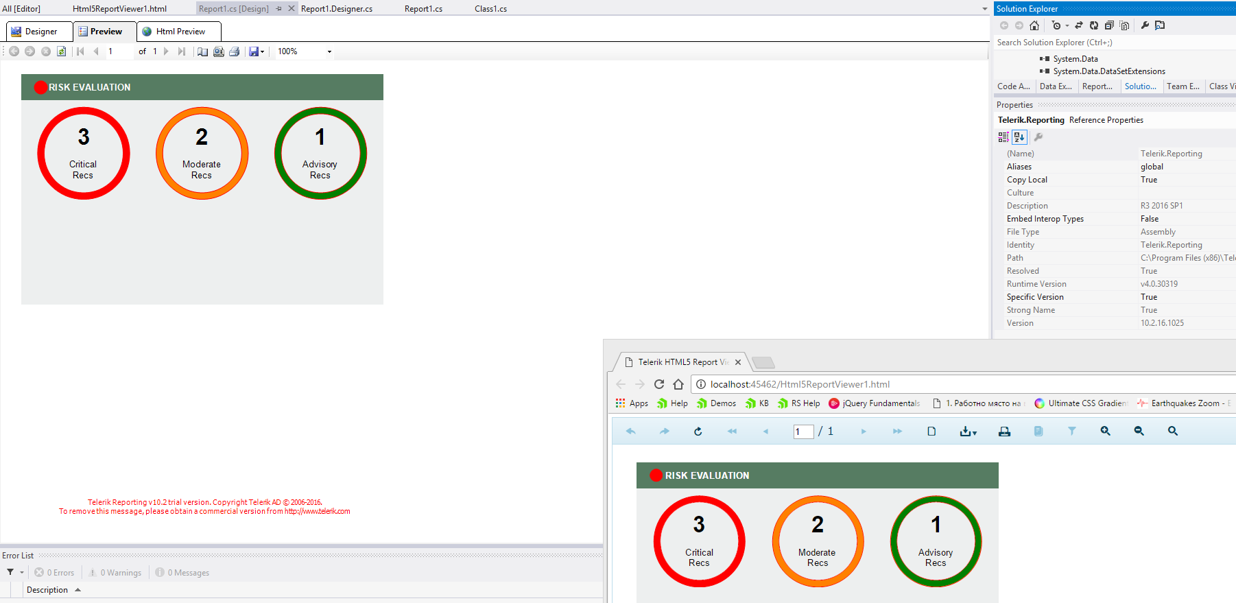As for the "unexpected layout in different media", I'm just using the Preview function provided with telerik in visual studio.