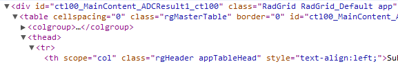 I tried ".RadGrid_Default .appTableHead { <styles> }" like the article suggests, as well as several other variations and nothing is working for me. It's driving me bonkers! >.<