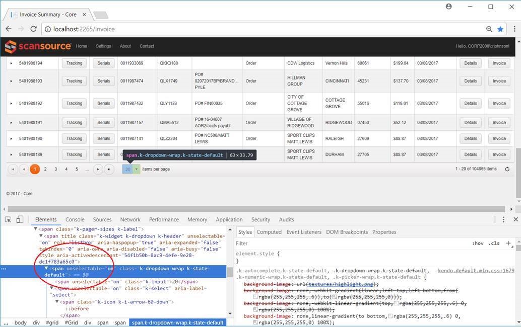 Hi Preslav - thank you for your reply. I did some more research and found that it was indeed not disabled. The list of options for # of results to show is actually being showed off screen to the bottom and quite a ways (20 or greater pixels) from the actual drop down. I'm not sure why that is but is there any way to always make it appear above the drop down instead of below it? Since it's at the bottom of the grid I don't ever want it to popup below itself, it will always be off screen.
