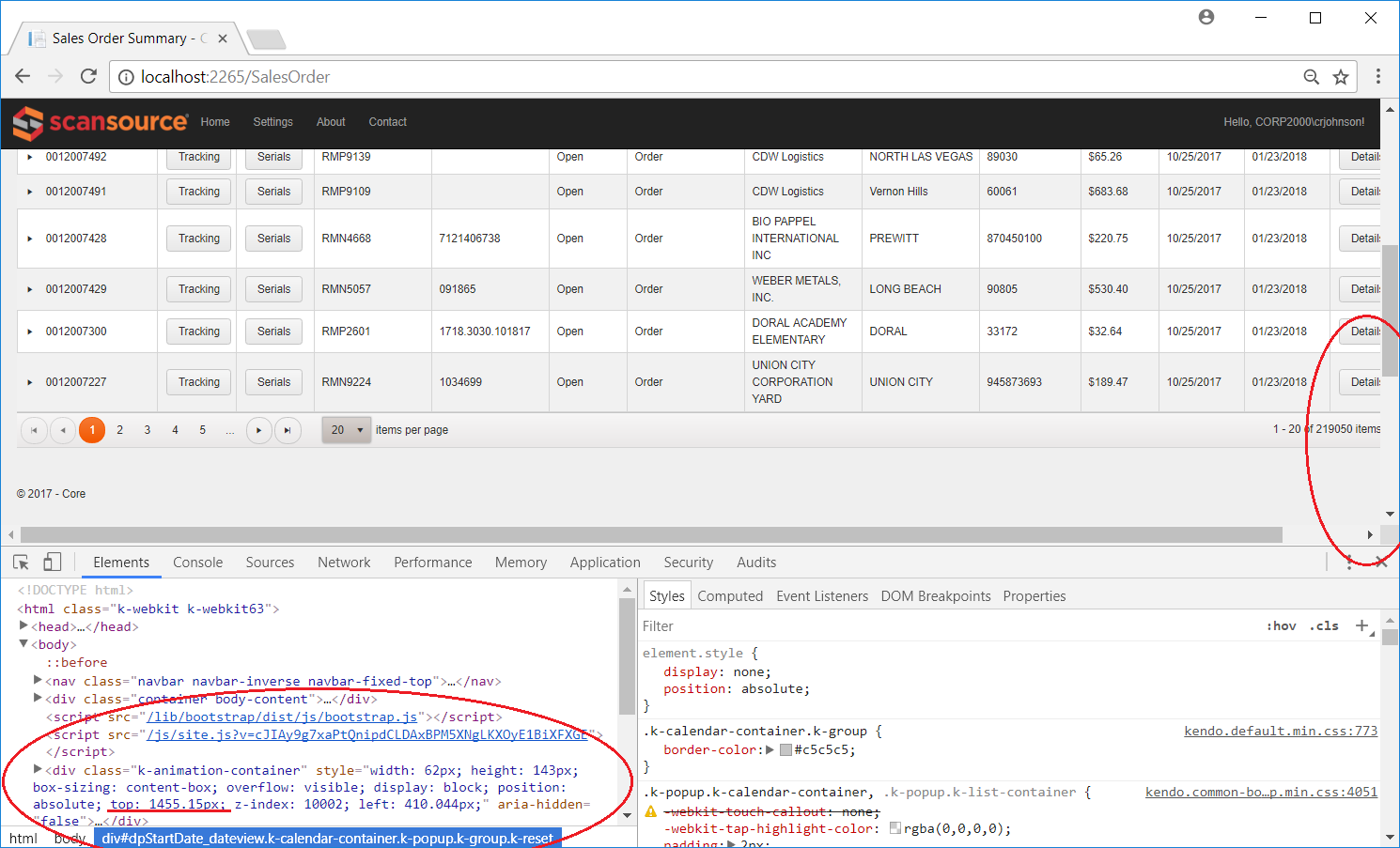 Hi Preslav - thanks for the help. I did try that custom code in document.ready but it doesn't seem to have any impact? Is there somewhere else I can set it. It really seems like the terlerik calcuations of where to place that page item count list is off. I inspected the browser elements and sometimes it's calculating at top 2000? Way off the screen. It's doing it so far off the screen that it causes the browser scroll bar to expand when I don't do anything. Please see the image attached for more details and let me know if you have any other ideas. It feels like the animation container is too blame. I don't need the animation - if I could turn that off maybe that would help?