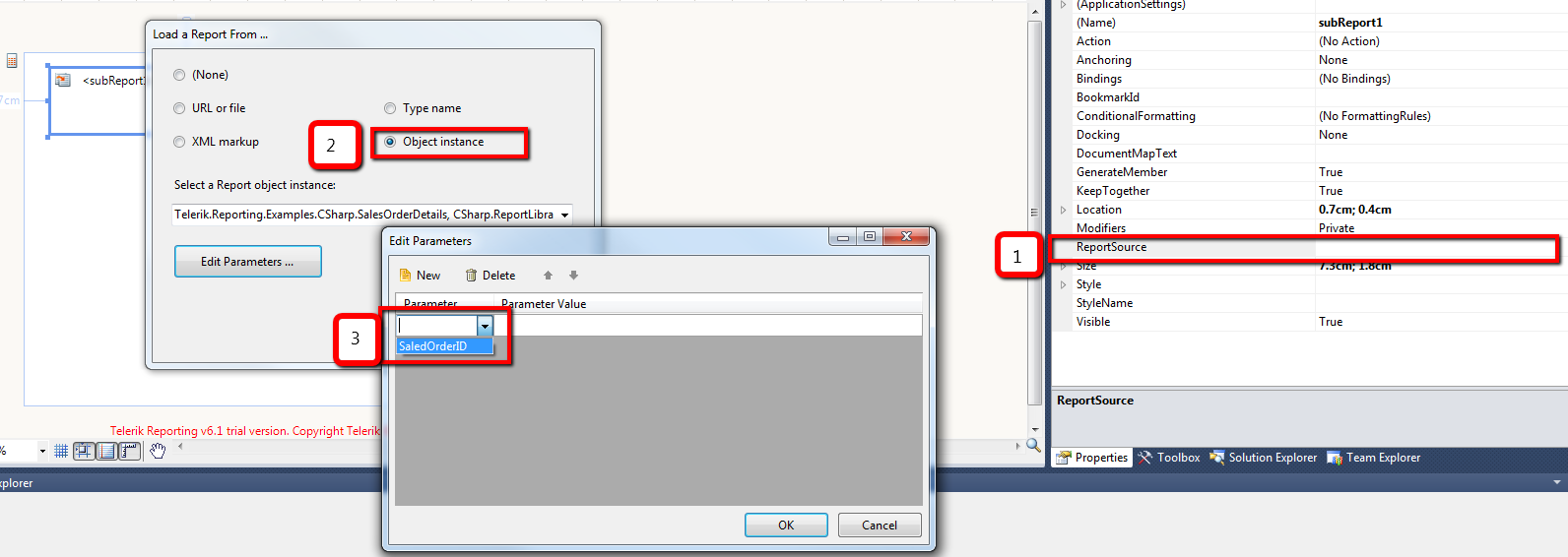 Warning 1 'Telerik.Reporting.SubReport.Parameters' is obsolete: 'The Parameters property is now obsolete. Please use the ReportSource.Parameters property instead.'