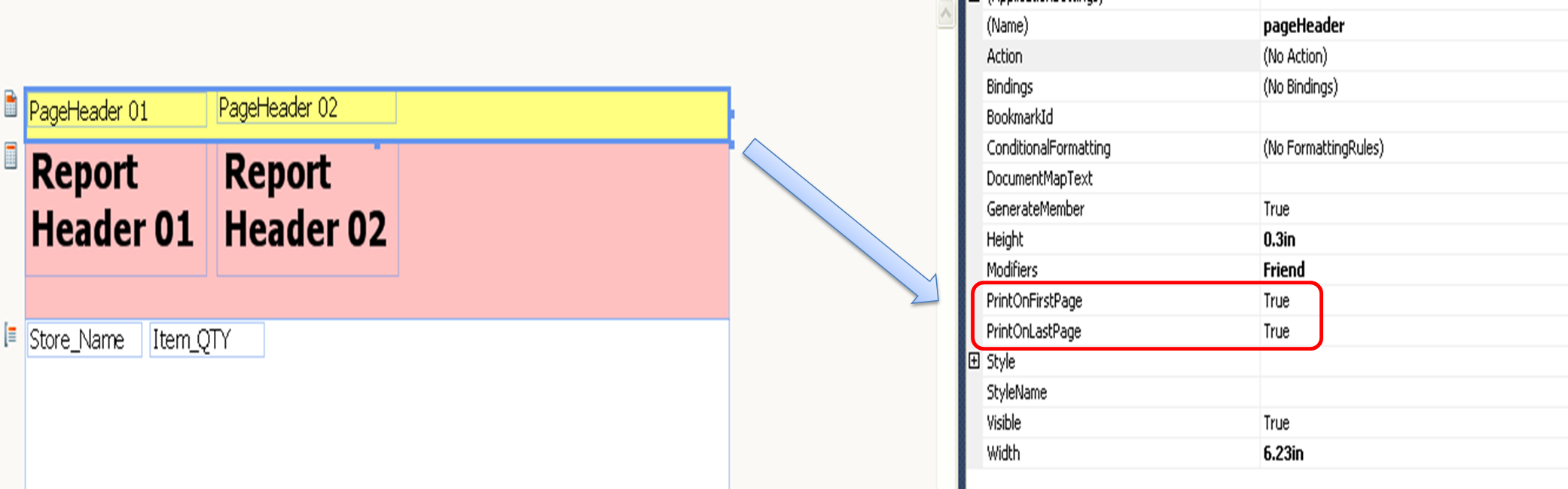 + Page Header has yellow background and PrintOnFirstPage = True, PrintOnLastPage = True. Add textbox1 to page header and textbox's KeepTogether = True.