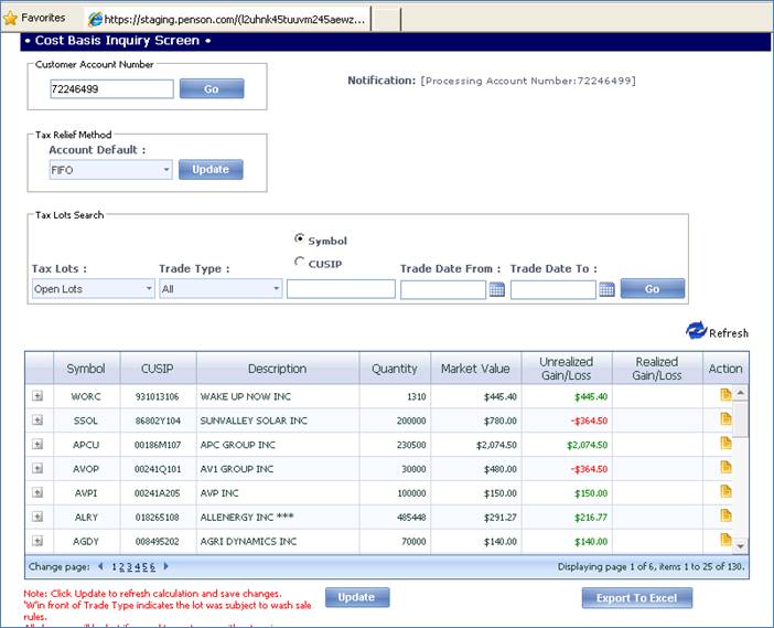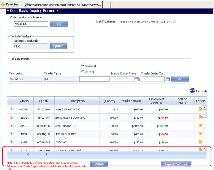<telerik:RadGrid ID="rgCostBasisInquiry" runat="server" AllowMultiRowSelection="false" AllowPaging="true" OnPreRender="rgCostBasisInquiry_PreRender" ShowHeader="true" AutoGenerateColumns="False" loadingtemplatetransparency="25" OnNeedDataSource="rgCostBasisInquiry_NeedDataSource" Width="750px" OnItemDataBound="rgCostBasisInquiry_ItemDataBound" GridLines="None" AllowSorting="True" OnItemCommand="rgCostBasisInquiry_ItemCommand" Height="235px" AlternatingItemStyle-BackColor="AliceBlue" Skin="Office2007"> <AlternatingItemStyle BackColor="AliceBlue"></AlternatingItemStyle> <MasterTableView TableLayout="Fixed" Name="CBInquiryGrid" DataKeyNames="SecurityMasterID" EnableNoRecordsTemplate="true"> <PagerStyle Mode="NextPrevAndNumeric" Visible="true" /> <NoRecordsTemplate> <div> No records to display</div> </NoRecordsTemplate> <ParentTableRelation> <telerik:GridRelationFields MasterKeyField="SecurityMasterID" /> </ParentTableRelation> <NestedViewTemplate> <asp:Panel runat="server" ID="InnerContainer" Visible="false"> <telerik:RadGrid AllowMultiRowSelection="false" AllowPaging="false" ID="rgCBInquiryChildGrid" runat="server" Skin="Office2007" ShowHeader="true" Width="96%" OnItemDataBound="rgCBInquiryChildGrid_ItemDataBound" AutoGenerateColumns="False" loadingtemplatetransparency="25" OnNeedDataSource="rgCBInquiryChildGrid_NeedDataSource" GridLines="None" AllowSorting="True" Height="140px" AlternatingItemStyle-BackColor="AliceBlue"> <AlternatingItemStyle BackColor="AliceBlue"></AlternatingItemStyle> <MasterTableView TableLayout="Fixed" Name="CBInquiryChildGrid" EnableNoRecordsTemplate="true"> <Columns> <telerik:GridTemplateColumn DataField="SecurityMasterID" HeaderButtonType="TextButton" HeaderText="SecurityMasterID" SortExpression="SecurityMasterID" UniqueName="SecurityMasterID" Visible="false"> <HeaderStyle HorizontalAlign="left" /> <ItemStyle HorizontalAlign="left" /> <ItemTemplate> <asp:Label runat="server" ID="lblSecurityMasterID" Text='<%# DataBinder.Eval(Container.DataItem, "SecurityMasterID")%>'></asp:Label> </ItemTemplate> </telerik:GridTemplateColumn> <telerik:GridTemplateColumn DataField="ParentLotID" HeaderButtonType="TextButton" HeaderText="ParentLotID" SortExpression="ParentLotID" UniqueName="ParentLotID" Visible="false"> <HeaderStyle HorizontalAlign="left" /> <ItemStyle HorizontalAlign="left" /> <ItemTemplate> <asp:Label runat="server" ID="lblParentLotID" Text='<%# Convert.ToInt64(DataBinder.Eval(Container.DataItem, "ParentLotID"))%>'></asp:Label> </ItemTemplate> </telerik:GridTemplateColumn> <telerik:GridTemplateColumn DataField="TradeNumber" HeaderButtonType="TextButton" HeaderText="Trade #" SortExpression="TradeNumber" UniqueName="TradeNumber"> <HeaderStyle HorizontalAlign="center" Width="50px" /> <ItemStyle HorizontalAlign="left" /> <ItemTemplate> <asp:LinkButton ID="hlTradeNumber" Font-Underline="true" ForeColor="Blue" ToolTip="Click here to view Cost Basis Detail screen" runat="server" Text='<%# ((DataBinder.Eval(Container.DataItem, "TradeNumber") == null) || (DataBinder.Eval(Container.DataItem, "TradeNumber") == "")) ? " " : DataBinder.Eval(Container.DataItem, "TradeNumber")%>'></asp:LinkButton> </ItemTemplate> </telerik:GridTemplateColumn> <telerik:GridTemplateColumn DataField="TaxLotID" HeaderButtonType="TextButton" HeaderText="Lot ID" SortExpression="TaxLotID" UniqueName="TaxLotID"> <HeaderStyle HorizontalAlign="center" Width="50px" /> <ItemStyle HorizontalAlign="left" /> <ItemTemplate> <asp:LinkButton ID="hlLotID" Font-Underline="true" ForeColor="Blue" ToolTip="Click here to view Cost Basis Detail screen" runat="server" Text='<%#Convert.ToInt64(DataBinder.Eval(Container.DataItem, "TaxLotID")) %>'></asp:LinkButton> </ItemTemplate> </telerik:GridTemplateColumn> <telerik:GridTemplateColumn DataField="MatchedLotID" HeaderButtonType="TextButton" HeaderText="Match Lot ID" SortExpression="MatchedLotID" UniqueName="MatchedLotID"> <HeaderStyle HorizontalAlign="center" Width="50px" /> <ItemStyle HorizontalAlign="left" /> <ItemTemplate> <asp:LinkButton ID="hlMatchedLotID" Font-Underline="true" ForeColor="Blue" ToolTip="Click here to view Cost Basis Detail screen" runat="server" Text='<%#Convert.ToInt64(DataBinder.Eval(Container.DataItem, "MatchedLotID")) %>'></asp:LinkButton> </ItemTemplate> </telerik:GridTemplateColumn> <telerik:GridBoundColumn DataField="TradeDate" DataType="System.DateTime" HeaderButtonType="TextButton" HeaderText="Trade Date" SortExpression="TradeDate" UniqueName="TradeDate" DataFormatString="{0:MM/dd/yyyy}"> <HeaderStyle HorizontalAlign="center" Width="55px" /> <ItemStyle HorizontalAlign="left" /> </telerik:GridBoundColumn> <telerik:GridTemplateColumn DataField="TradeType" HeaderButtonType="TextButton" HeaderText="Trade Type" SortExpression="TradeType" UniqueName="TradeType"> <HeaderStyle HorizontalAlign="center" Width="85px" /> <ItemStyle HorizontalAlign="Center" /> <ItemTemplate> <asp:Label runat="server" ID="lblTradeType" Text='<%# DataBinder.Eval(Container.DataItem, "TradeType")%>'></asp:Label> </ItemTemplate> </telerik:GridTemplateColumn> <telerik:GridBoundColumn DataField="Quantity" HeaderButtonType="TextButton" HeaderText="Qty" SortExpression="Quantity" UniqueName="Quantity"> <HeaderStyle HorizontalAlign="center" Width="40px" /> <ItemStyle HorizontalAlign="Right" /> </telerik:GridBoundColumn> <telerik:GridTemplateColumn DataField="Price" HeaderButtonType="TextButton" HeaderText="Price" SortExpression="Price" UniqueName="Price"> <HeaderStyle HorizontalAlign="center" Width="60px" /> <ItemStyle HorizontalAlign="Right" /> <ItemTemplate> <asp:Label runat="server" ID="lblPrice" Text='<%# DataBinder.Eval(Container.DataItem, "Price")%>'></asp:Label> </ItemTemplate> </telerik:GridTemplateColumn> <telerik:GridTemplateColumn DataField="MarketValue" HeaderButtonType="TextButton" HeaderText="Market Value" SortExpression="MarketValue" UniqueName="MarketValueChld"> <HeaderStyle HorizontalAlign="center" Width="70px" /> <ItemStyle HorizontalAlign="Right" /> <ItemTemplate> <